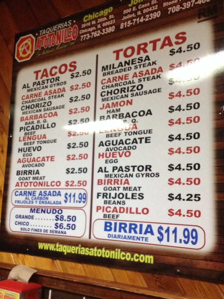 Taquerias Atotonilco in Little Village offers a chill atmosphere with a touch of traditional Mexican flair. The menu features a variety of tacos and tortas, with highlights like the flavorful carne asada and al pastor tacos. The birria torta is a solid choice, although some dishes can be on the drier side. The vibrant market-like ambience adds to the authentic dining experience, with the smell of food cooking filling the air. Fresh and succulent barbacoa tacos are generously packed, accompanied by a perfectly balanced salsa. The warm and chewy tortillas are made with love, enhancing each bite of the delicious Mexican fare. Vegetarian options are available, along with a range of meat choices cooked in the open kitchen. Service is quick and friendly, with reasonable prices and a 3.5% surcharge for card payments. Overall, Taquerias Atotonilco Little Village is a must-visit for those craving authentic Mexican flavors in a lively setting.